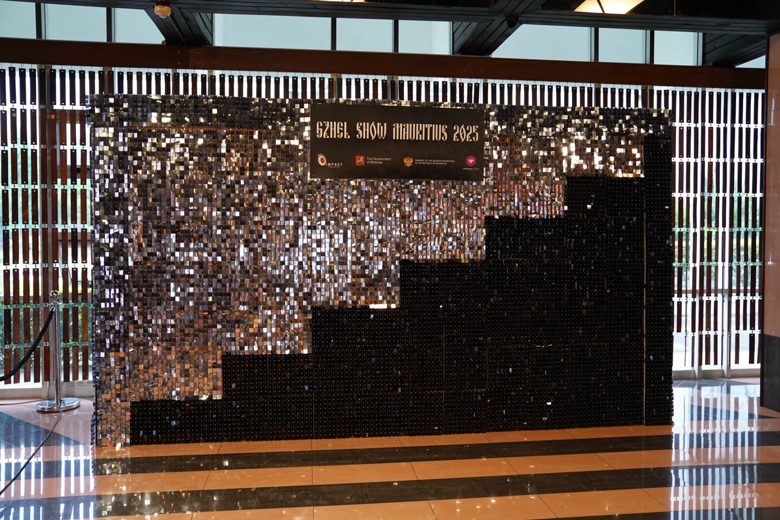 Each 30×30 cm reflective tile catches the light differently, creating movement even when the wall stands still. The result? A living, breathing surface that shifts with every camera flash, outfit color, or passing glance.