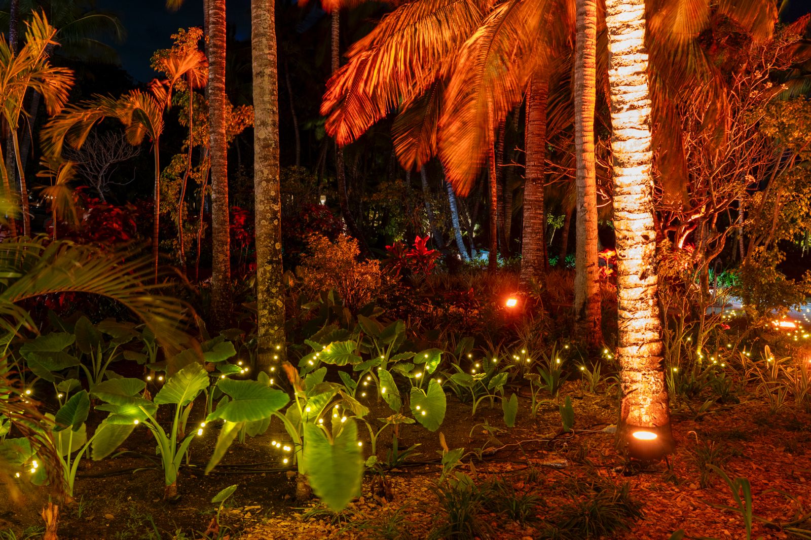 We choreograph the transition. As ambient light falls, pathway sources rise—first the solar jars glow, then the wicker lanterns flicker on, finally the fireflies whisper in the hedges. Guests feel the moment arrive without ever noticing a “switch.”