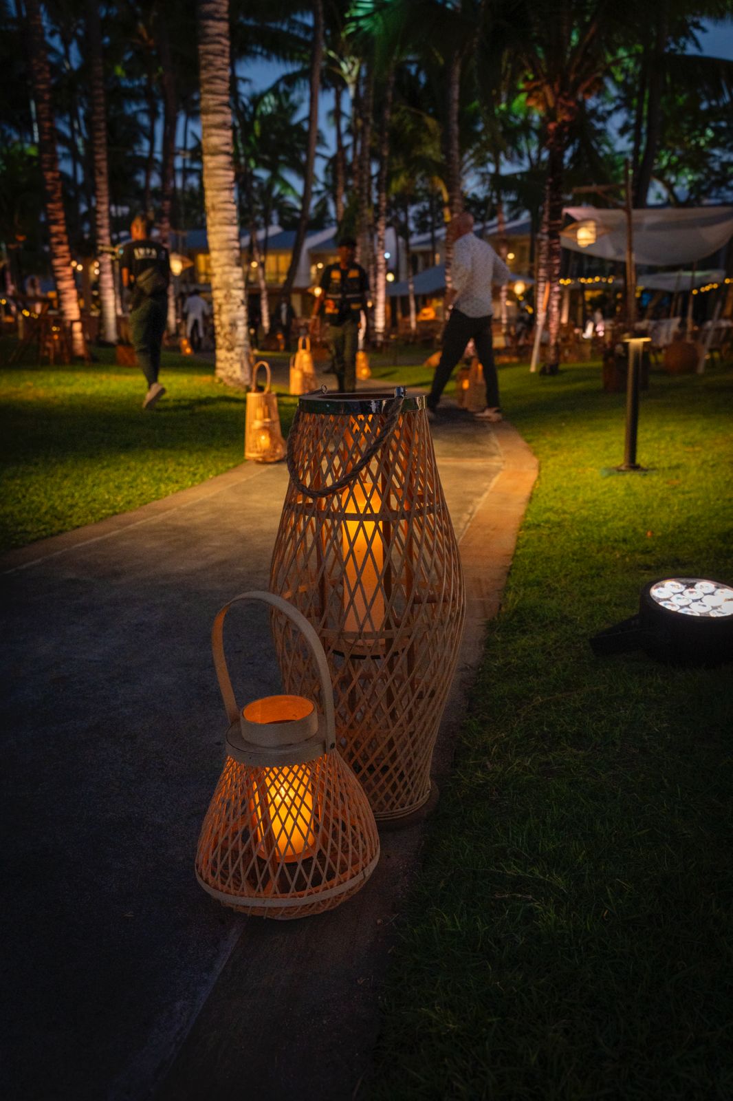 - Garden loop dotted with wicker lanterns for stroll-in guests.