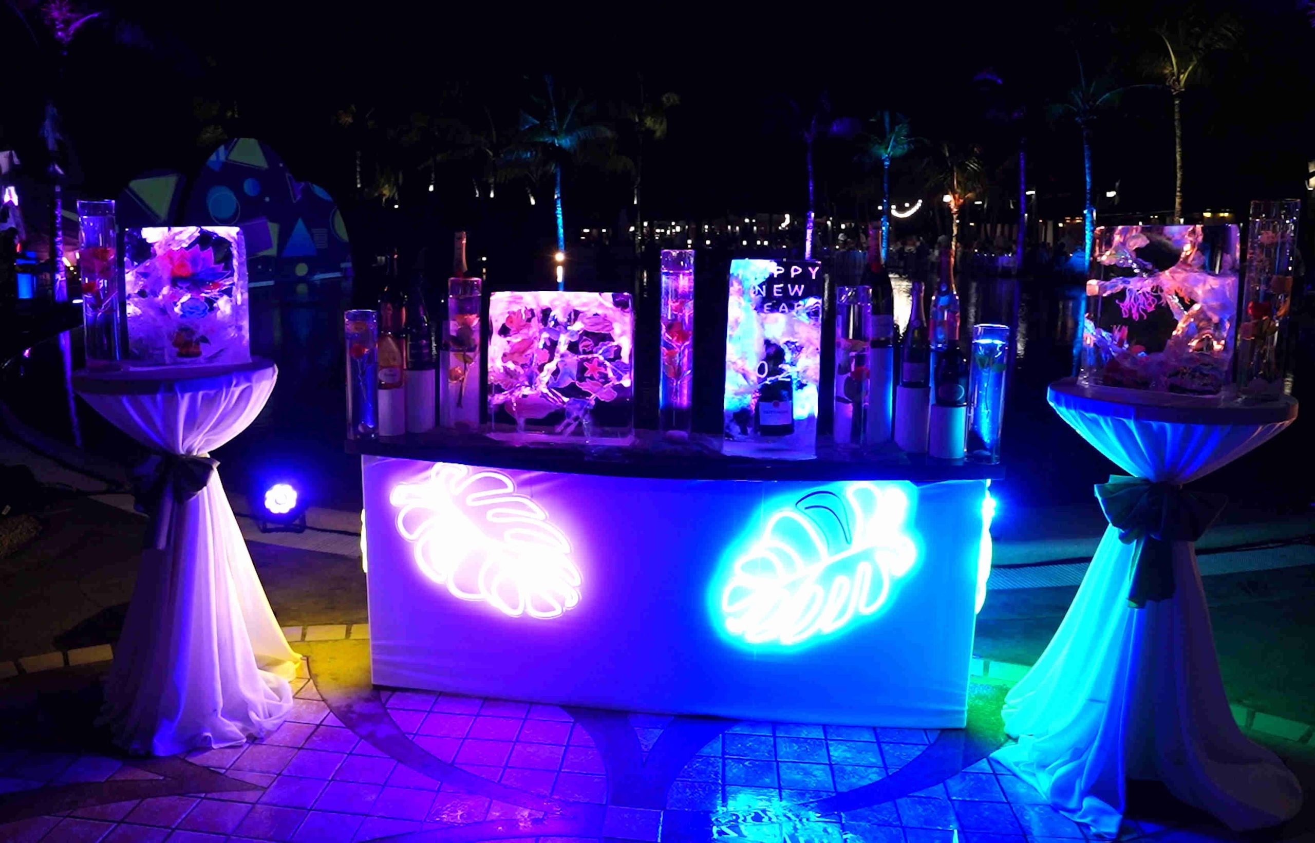 By sculpting the bar with illuminated tropical leaf lines, IPG created: