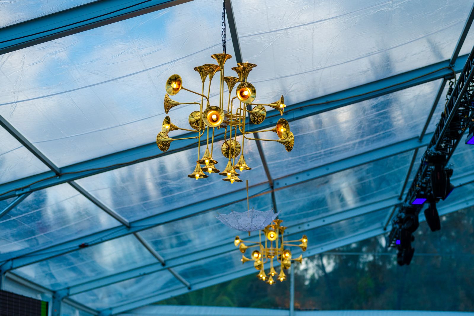- Full in-house fabrication of chandeliers, props, and ceiling rigs