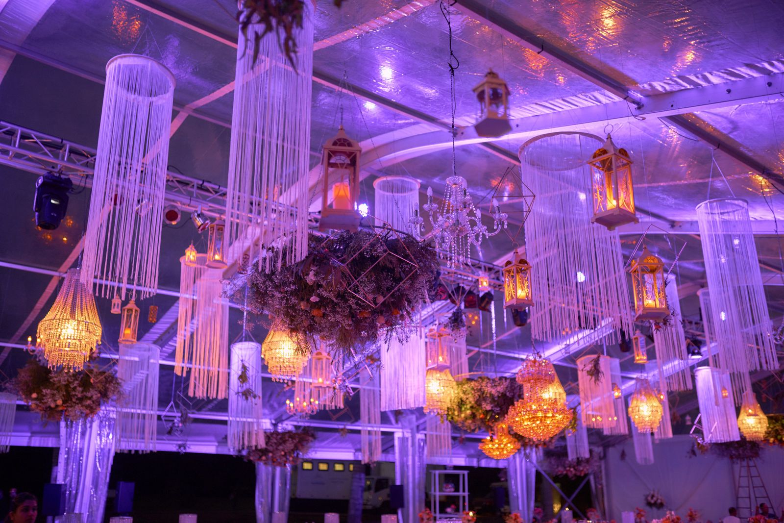 From mirrorball constellations to cascading silver coins, from floral chandeliers to glowing lanterns, our ceiling installations transform spaces into immersive stages. They don’t just decorate. They elevate.